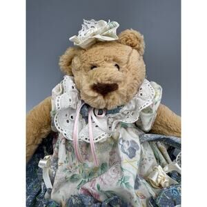 Vtg House of Lloyd Spring Blossom Teddy Bear Plush In Floral Dress 14”