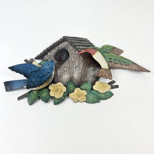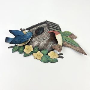 Vtg Hummingbird Bluebird Metal Wall Art Indoor/Outdoor Birdhouse