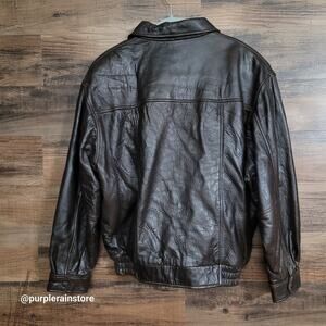 Vtg Hunt Club Pebbled Leather Bomber Coat Jacket L 80's 90's Preppy Streetwear