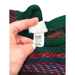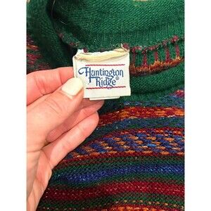 This vintage Huntington Ridge sweater is a must-have for any fashion-forward woman. The metallic stripes and cable-knit pattern make it perfect for the winter, fall, and spring seasons. The long sleeves and mock neck provide added warmth, while the acrylic blend material ensures comfort and stretch.
