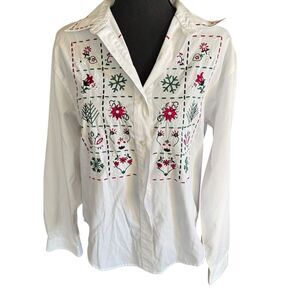 Vtg Hunts Point Embroidered Flowers Blouse Long Sleeve Size 10