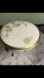 This elegant vintage trinket box set by C.M. Hutschenreuther (Hohenberg, Germany) dates between 1939β1965. It features a round lidded box on three ornate gold-gilded legs with a matching underplate. The lid and bowl are adorned with delicate hand-painted ivy leaves and soft gold detailing. Marked with the classic βCM 1814β green backstamp. A charming addition to any vanity, curio shelf, or antique collection.