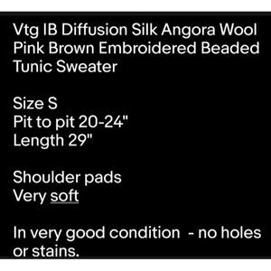 Vtg IB Diffusion Silk Angora Wool Pink Brown Embroidered Beaded Tunic Sweater S