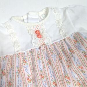 Vtg I-C Nightgown Baby Girls Sz 18m Flannel 70s Floral Cottage Core Boho