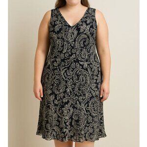 Vtg ICE 100% Silk Black Paisley print Y2K Fairy Grunge Romantic Flowy Dress Size 20