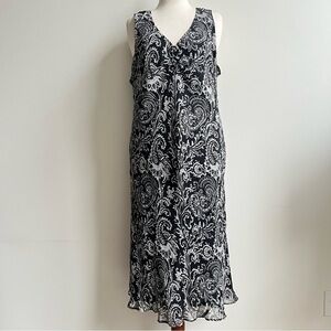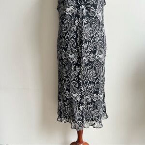 Vtg ICE 100% Silk Black Paisley print Y2K Fairy Grunge Romantic Flowy Dress 20