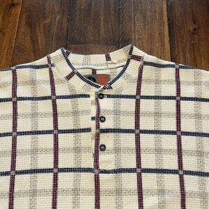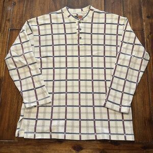 Vtg IOU Henley Shirt Mens L Grid Plaid Waffle-Knit 90’s 2