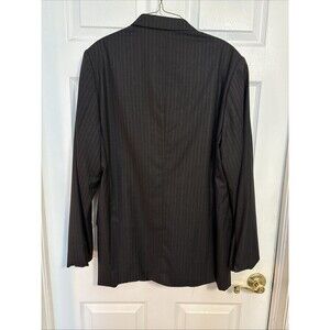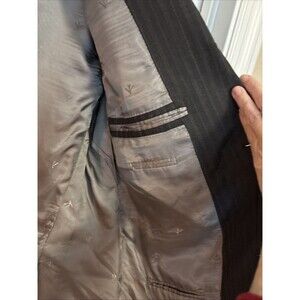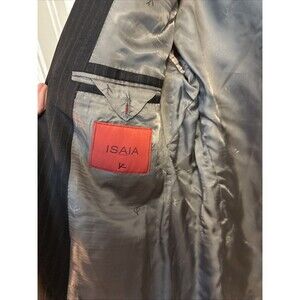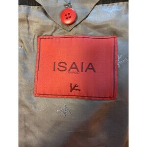 In excellent pre-owned condition, no stains or rips. This Vintage ISAIA Napoli dark gray with brown pinstripe blazer is a classic piece made in Italy from 100% wool. The 3-button jacket features a solid pattern with a lapel and a single-breasted cut. It is designed for multiple occasions such as parties, cocktails, clubs, or business meetings. The blazer is in size 46 (US) sz 56 (Italian), with a regular fit and lined with cupro (wool) material. The brand, Isaia, is known for its high-quality, sophisticated clothing for men.