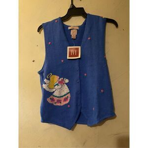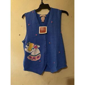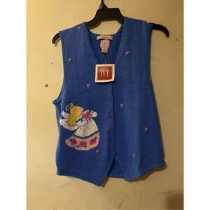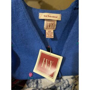 Vtg IVY hand embroidered vest sweater M Angel Pink Roses NWT