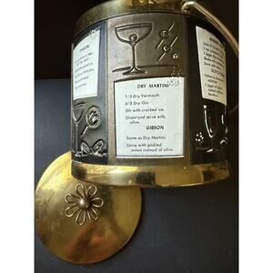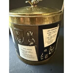 The Vtg Ice Bucket Serve Master Ice Bucket Barware from the 1960s is a unique and stylish addition to any bar or kitchen. Made of brass with a multicolor finish, this round ice bucket features a cover and handle for easy transport. Standing at 7 inches tall and 7 1/2 inches wide, this original vintage piece from Serv Master is sure to add a touch of retro charm to your cocktail drinks. Perfect for collectors or those looking to add a touch of 1960s style to their home decor.