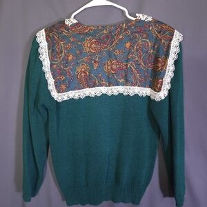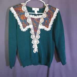 Vtg Illustrations Lace Collared Sweater Size Small Lace 80s 90s