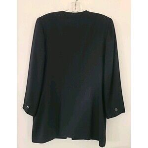 This vintage I.Magnin suit is a timeless addition to any wardrobe. The black wool blazer and skirt set includes a single-breasted jacket with full set 7-button style and a lined skirt with a waist size of 27 inches. The suit is perfect for various occasions such as travel, weddings, parties, christenings, formal events, workwear, and business meetings.