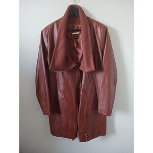 Vtg Iman Leather Jacket Trench Coat Asymmetrical Y2K Camel Size XL