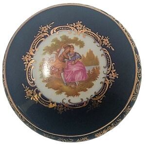 Vtg Imperia Limoges France Cobalt Blue 22K Gold Trinket Box W/ Courting Couple.