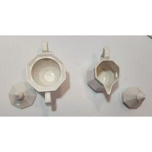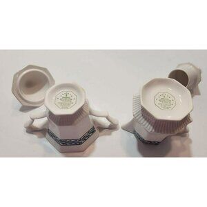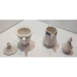 This is a vintage Castleton creamer and sugar set from the Blue Tulip product line. The set is made of stoneware and features a blue floral design. It was produced using art pottery techniques in Japan. Pre-owned by collector. In good condition. No chips or cracks. Crazing is seen up close. Please see pictures for details.