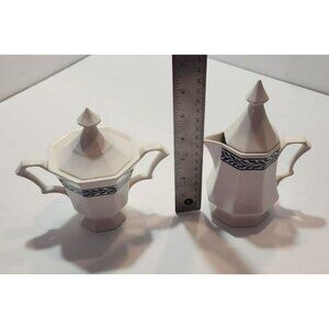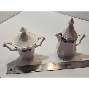 Vtg Independence Ironstone Castleton Japan "Blue Tulip" Sugar Bowl And Creamer