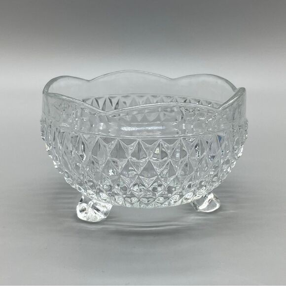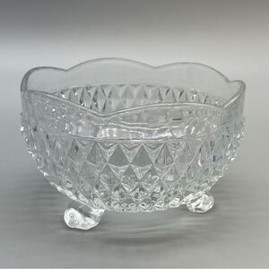 Vtg Indiana Glass Co. Diamond Point Clear Depression Glass Footed Bowl Dish
