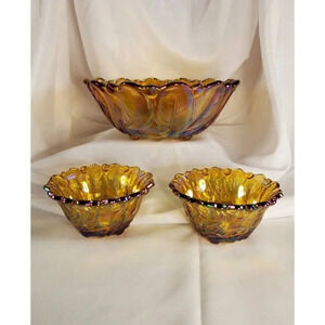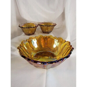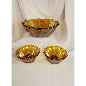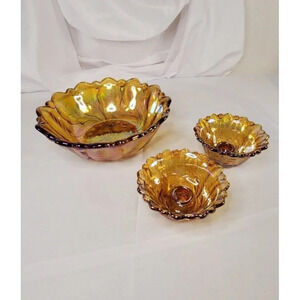 Vtg Indiana Glass Co Iridescent Gold marigold Carnival Glass #1211 3pc Console Set