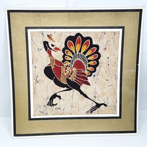 Vtg Indonesia Aswar Batik Collection Bird Peacock Ostrich Wall Decor Tan RightFC