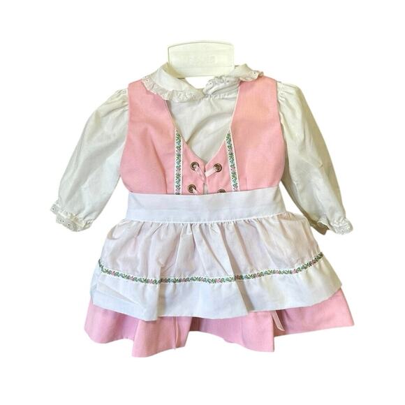 Vtg Infant 3piece Apron Shirt & Dress Set Pink/Wht Lace up 6-9 months