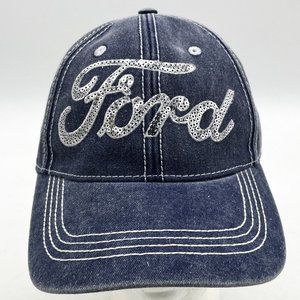 Vtg Infinity Ford Baseball Hat Womens OSFM Blue Denim Cotton Sequin Logo Cap