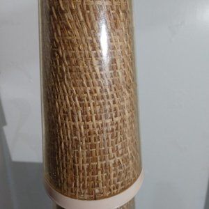 Vtg Insulated Tumblers 4 Plastic Cups Rattan Raffia Wicker MCM Retro Barware