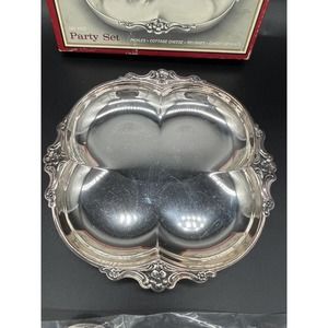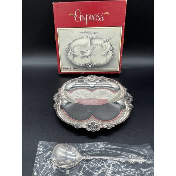 Vtg International Deep Silver Empress Elegant Party Set Relish Tray Spoon w/ Box