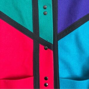 Vtg International Scene Colorblock Wool Coat 70s Women’s 7/8 Abstract *READ