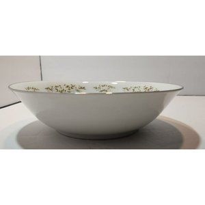 This elegant serving bowl from the International Silver Company is a beautiful addition to any mid-century modern collection. The intricate floral pattern on the porcelain composition is a stunning display of craftsmanship. Measuring 9" in diameter and 2.5" in height, it's the perfect size for serving salads or side dishes.