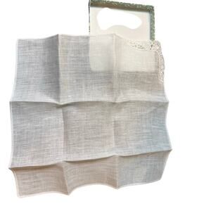 Vtg Irish Linen Wedding Handkerchief White Lace Trim Hanky Something Old