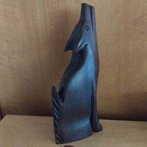 Fabulous carved ironwood figurine/sculpture of a coyote or wolf howling.