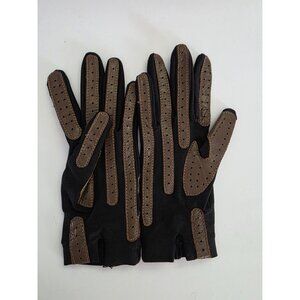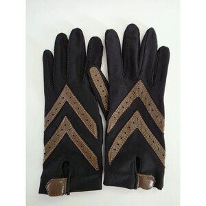 Vtg Isotoner Womens Black & Brown Leather Gloves One Size