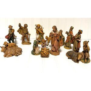 There is one Fontanini piece that is the small angel, that I included. Total of 15 pieces. See photos for characters. Made of a hard rubber in the 1960s.