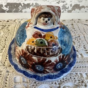 This vintage Italian pottery salt cellar adds a touch of whimsy to your kitchen decor. The handmade and painted design features a cozy cottagecore style with a granny-inspired aesthetic. Measuring 4 inches in size, this hand painted salt cellar is perfect for adding a dash of flavor to any meal. The unique finish and brand of this item make it a collectible piece for those who appreciate Italian craftsmanship. Ideal for collectors of dinnerware and serveware alike, this lidded salt cellar is a must-have addition to any kitchen.