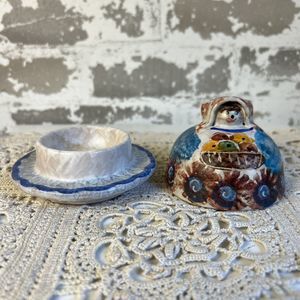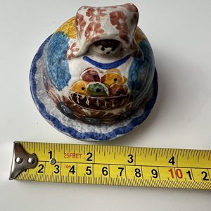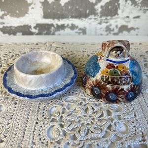 Vtg Italian Pottery Salt Cellar Cottagecore Granny Whimsy Handmade & Painted 4”