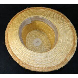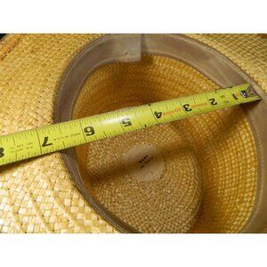 Please take a look at the pictures. This is a vintage hat, no smells, no stains but the delicate straw is pulling at some areas on the brim