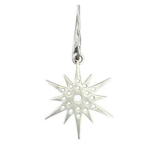 Italy 926 Silver Dangle Starburst CZ? Diamond Earrings, crystal star spangled. S in a Shield on Post