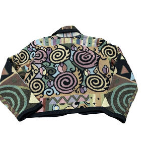Vtg Its In The Bag Unge-Potch-Ket Sz Small Tapestry Button Jacket Art To Wear