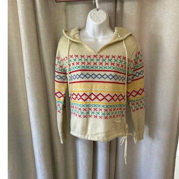 Vtg Ivory Sweater Hoodie Colorful Design “Hot Line Mervyns” Women S