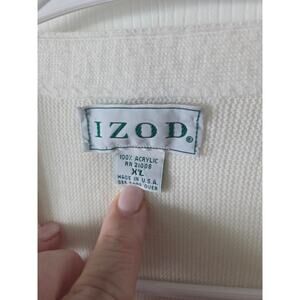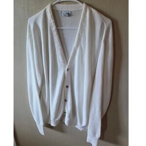 Vtg Izod Cardigan Sweater White XL Preppy Collegiate Grandpa Mr Rogers