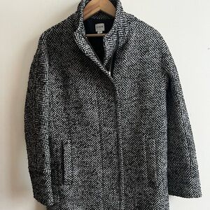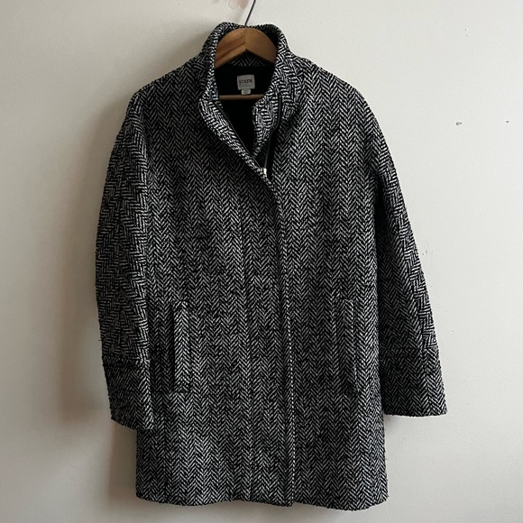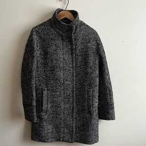 Vtg J. Crew 00 Houndstooth Wool Blend Black and Gray Pea Coat