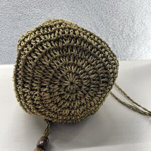 Vtg J Crew Bucket Purse Bag Brown Greenish Paper Raffia Mini Hand Y2K Drawstring