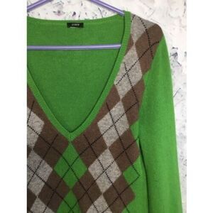 J. Crew Casual Argyle Sweater Women's Medium M Green 100% Lambs Wool. Excellent clean condition.