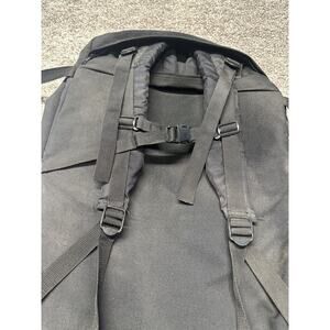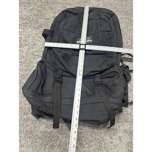 This Vtg JANSPORT Double Backpack is made in the USA and designed for hiking and camping adventures. The extra-large size and multifunction compartment provide ample storage space for all your gear. The backpack features a vintage design with a black canvas material, padded straps for comfort, external pockets for easy access, and an ergonomic handle for convenient carrying. It also includes a hip belt and adjustable sizing for a customized fit, making it a practical and versatile choice for outdoor excursions.