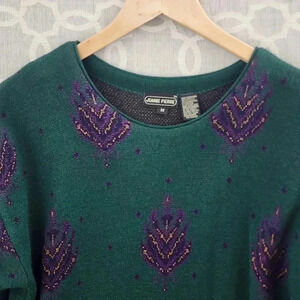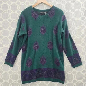 Vtg JEANNE PIERRE Lambswool Christmas Pattern Long Sleeve Sweater Shift Dress