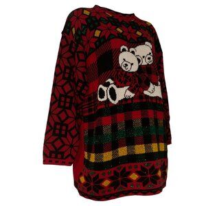 Vtg JJ Browne Christmas Sweater Womens L PulloverTeddy Bears Ugly Cute Holiday