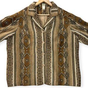 Vtg JMS Womens Tapestry Jacket Boho Southwestern Aztec Jacquard Blazer 90s - 22W