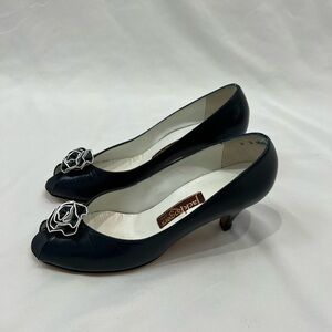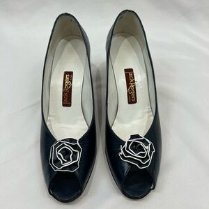 Vtg Jack Rogers 80’s Navy Blue Leather Peep Toe Heels With Rosette Size 8 S