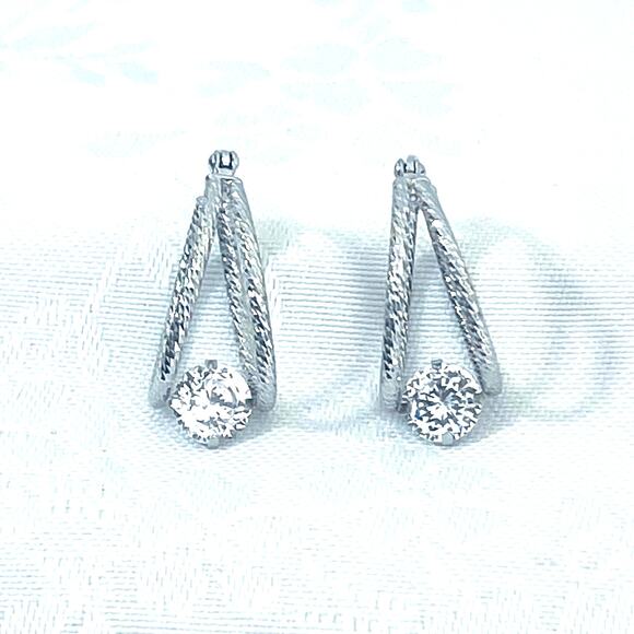 Vtg Jacmel JCM Sterling Silver 925 CZ Double Hoop Earrings Textured