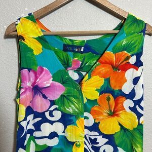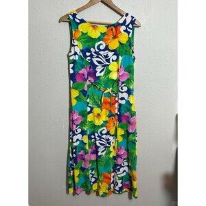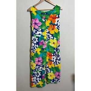 Vtg Jams World Dress S Tropical Floral Midi Button Front Sleeveless Colorful